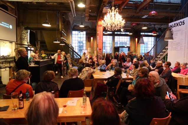 Vor der Filmaufführung im Naxos-Kino hatten die Besucher*innen die Möglichkeit, die alte Maschinenhalle der früheren Naxos-Union im Rahmen einer kleinen Führung zu besichtigen. Das Podiumsgespräch mit Melanie Gärtner (Hessischer Dokumentarfilmtag, LETs DOK), Maximilian Graeve (Geschäftsführer Dr. Arthur Pfungst-Stiftung), Dr. Ina Knobloch (Regisseurin) und Michael Weber (Theater Willy Praml) gab vertiefende Einblicke in die Familiengeschichte der Pfungsts und die Stiftungsarbeit, die Filmarbeit und das Programm der diesjährigen Hessischen Dokumentarfilmtage.