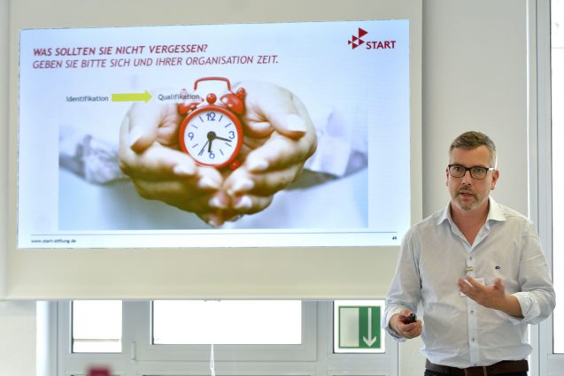 A) In die „Grundlagen des Fundraisings“ führte Ronald Menzel-Nazarov ein, Leiter Fundraising & Kommunikation der START-Stiftung gGmbH. Fundraising bedürfe intensiver Beziehungs- und Bestandspflege und erledige sich nicht nebenbei. Um Erfolg im Fundraising zu haben, benötigten Organisationen vor allem wirkungsvolle Werkzeuge, eine starke Marke mit hohem Imagetransfer sowie eine langfristig tragende Strategie. Er berichtete über Methoden aus seiner 10-jährigen Praxis.